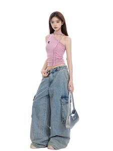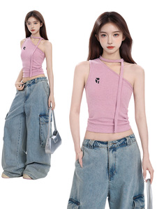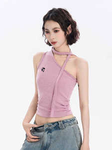 粉色挂脖斜肩小吊带背心女夏外穿设计感内搭打底辣妹针织无袖上衣