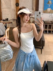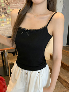 ホットガールレースステッチ胸パッド付き美しいバックサスペンダー女性の2025夏の新しい通勤アウターウェア無地インナートップ
