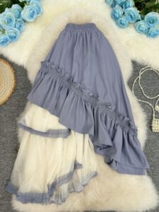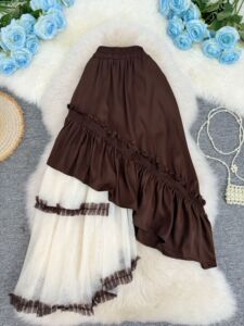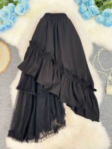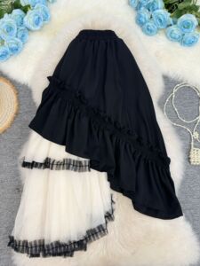 欧美辣妹风秋冬新款不规则拼接半身裙设计感网纱拼接中长款裙子女