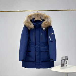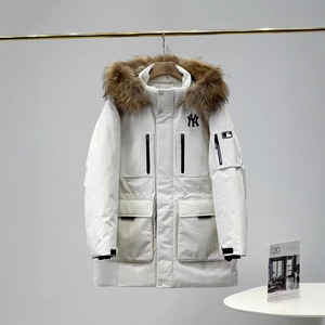 2025张凌赫同款MLB 情侣款羽绒服冬季中长款防风毛领工装连帽外套