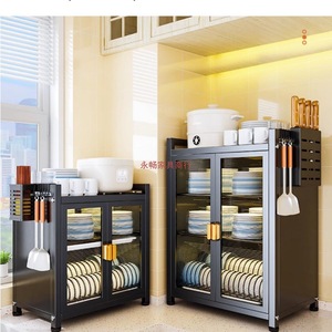 食器棚キッチン収納ラック多層家庭用カウンタートップ食器防塵収納ボックス多機能プレート、箸、食器排水ラック