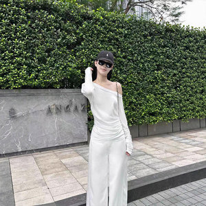 5werkwen 懒懒斜肩T 天丝莱赛尔长袖防晒T