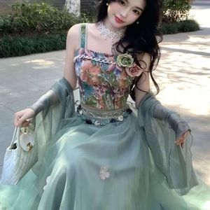 油画复古纯欲风吊带碎花背心气质2025新款套装大小姐超仙套装女