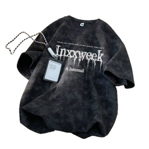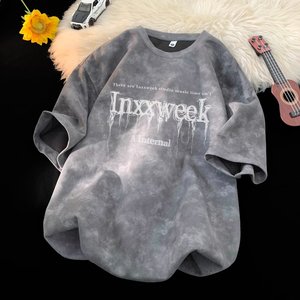 短袖t恤男潮牌夏季宽松五分袖2025年新款网红潮流ins简约印花上衣