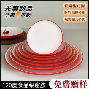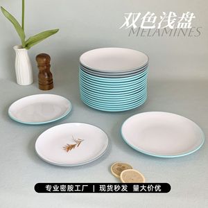 双色密胺圆盘加厚浅盘快餐盘自助餐盘商用西餐盘彩色火锅圆碟批发