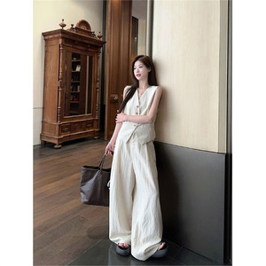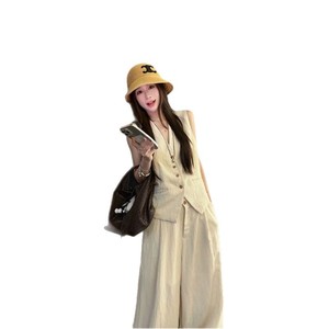 ファッションスーツシングルブレストベストベストトップ女性の夏のハイウエストカジュアルパンツワイドレッグパンツハイエンドツーピースセット