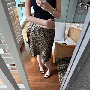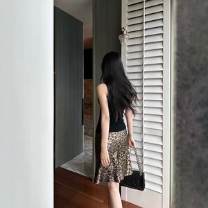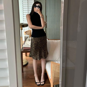 5werkwen 复古鎏金 烫金豹纹A字高腰半身裙夏季新品修身显瘦短裙