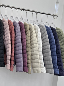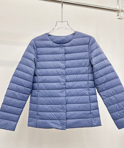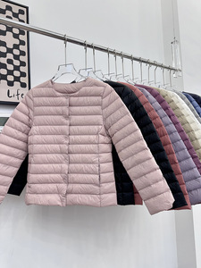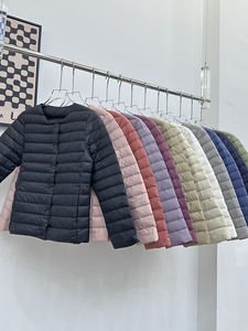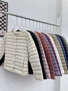 レディースインナーウェアダウンライナー長袖ラウンドネック無地90%ダックダウン超軽量コート付きアーティファクト暖かい可変Vネック
