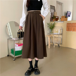 日式黑色工装a字半身裙设计感小众压褶遮胯显瘦中长款半身裙