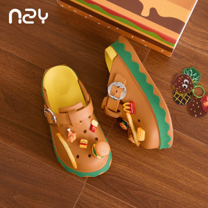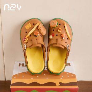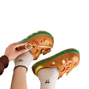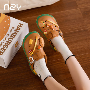 ハンバーガークロックスウォーターフォールチーズ厚いビーフバーガー2025新作サンダルスリッパ滑り止めレディースアウターウェアかわいい夏サンダル