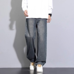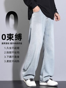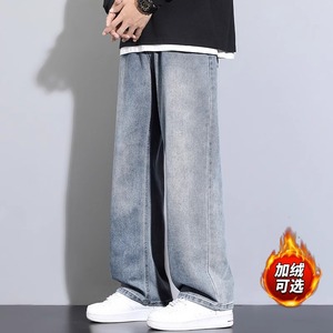 NASA黑色牛仔裤男士秋冬季新款直筒宽松男生美式休闲加绒裤子