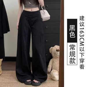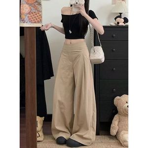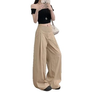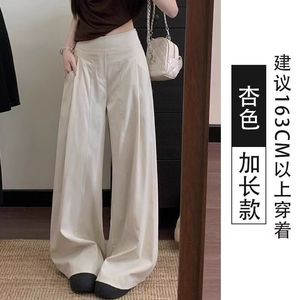 卡其色高腰垂感休闲裤女夏季薄款显瘦宽松阔腿裤不贴腿拖地裤长裤
