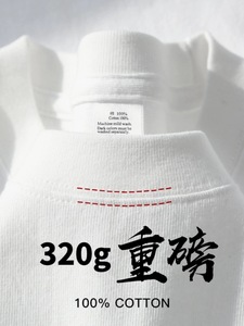 320g重磅美式短袖T恤厚实不透 夏季宽松大码棉情侣款纯白半袖男女