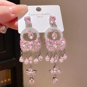 复古银针锆石圆形爱心水滴流苏耳环轻奢时尚小众高级感个性耳饰女
