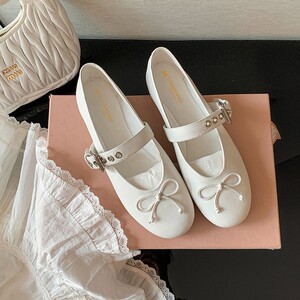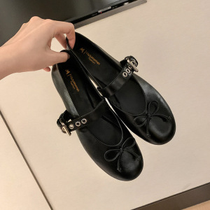 苏茵茵同款芭蕾鞋蝴蝶结小羊皮平底单鞋女玛丽珍小皮鞋透气芭蕾鞋