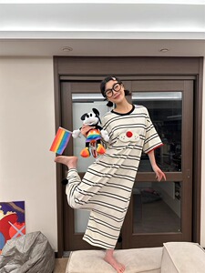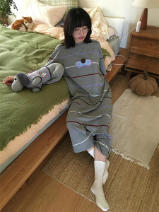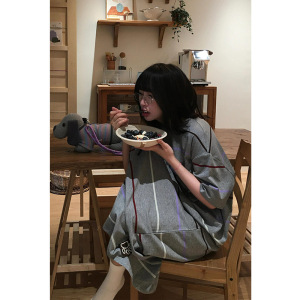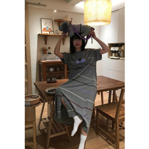 【现货】条纹酷猫睡衣女夏新款设计感短袖宽松连体休闲家居服外穿
