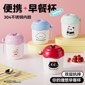 304 ステンレス鋼の朝食カップスープボックスポータブル漏れ防止断熱スープポット豆乳スープカップオートミールスープボウルテイクアウトランチボックス