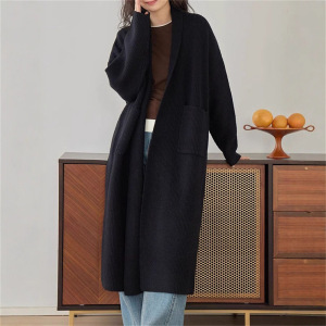 韓国スタイルの女性用膝上ロングセーター 2025 秋冬新スタイルレイジースタイルルーズ厚みのあるニットカーディガンジャケット