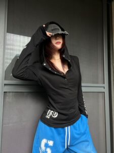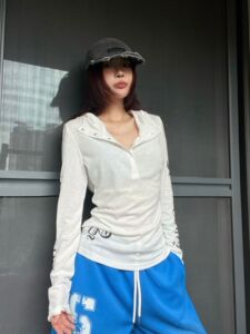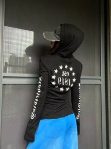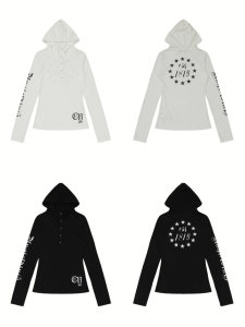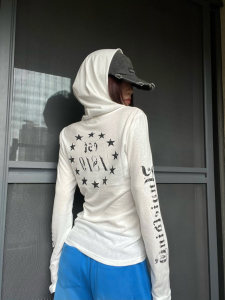 美式朋克长袖连帽T恤女哥特风防晒罩衫修身薄纱上衣辣妹外贸爆款