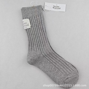 新款四季布标西太后土星袜子纯色双针坑条粗线女中筒袜时尚堆堆袜