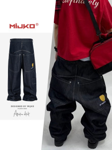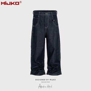 MIJKO メンズ レディース シルエット ワークウェア マルチポケット 刺繍 オリジナル カウボーイ ユニセックス マルチサイズ ストレート ブルー ジーンズ