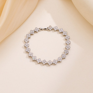 手链四叶草手环亚马逊跨境爆款彩色满钻欧美时尚设计奢华手链