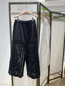 日本复古小众设计重工激光镂空刺绣松紧腰直筒高腰阔腿休闲长裤