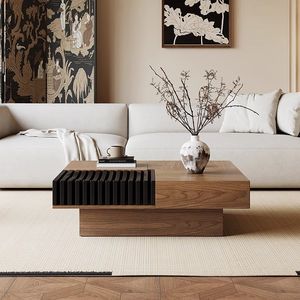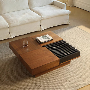 及爱意式北美胡桃木纹现代茶几北欧客厅小户型家用正方形简约