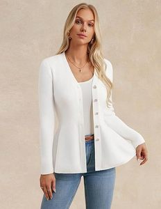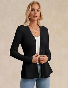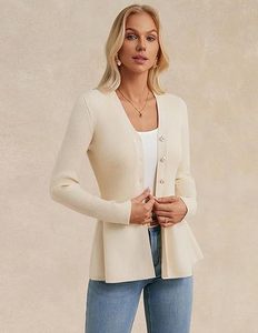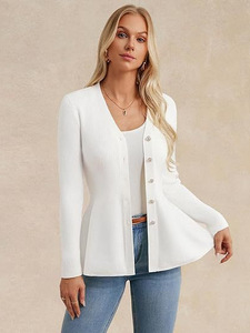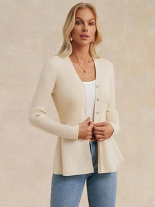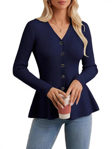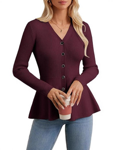 2025欧美外贸女式荷叶边羊毛混纺纽扣开衫长袖休闲罗纹针织上衣