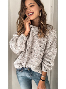 现货跨境亚马逊女装女式休闲套头衫长袖圆领花点针织毛衣秋冬