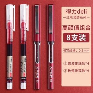 得力红笔按动式中性笔 全针管学生用红色笔芯0.5教师专用批改水笔