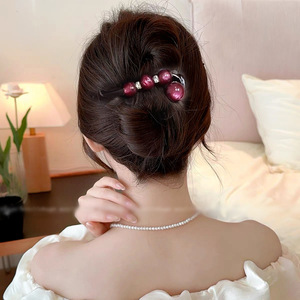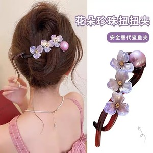 新款简约扭扭夹发夹女后脑勺高级珠珠水钻一字夹抓夹女盘发器发卡