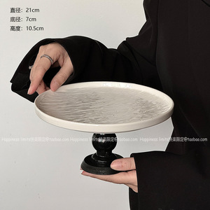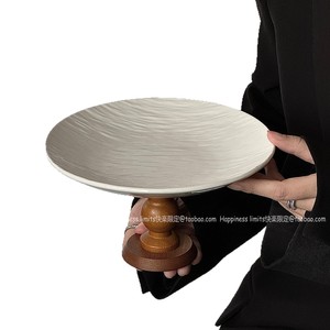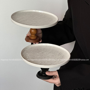 ins法式高脚岩石纹果盘木质复古高级感收纳盘零食蛋糕托盘甜品台