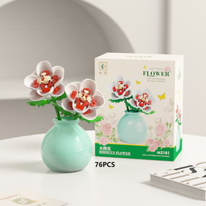 兼容乐高积木永生花篮摆件玫瑰花束儿童益智拼装玩具女生礼物批发