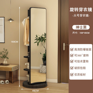 卧室旋转挂衣架落地全身镜置物架带镜子一体客厅家用可移动落地镜
