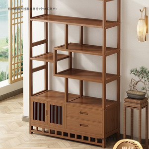 博古架实木中式茶叶展示柜茶架子置物架茶室茶柜茶具摆件收纳柜子