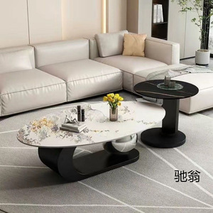 スレートオーバルコーヒーテーブルライト高級モダンリビングルームホームミニマリスト小さなアパート新しいクリエイティブインターネットセレブコーヒーテーブルテーブル