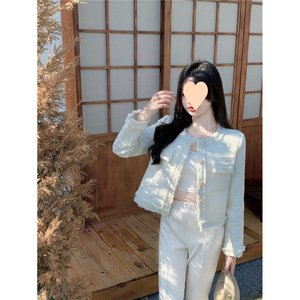 2025年新款春秋百搭白色小香风外套女爆款独特别致设计感短款上衣