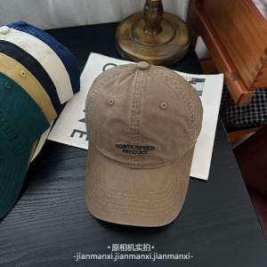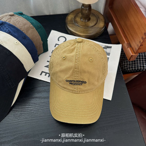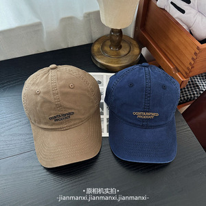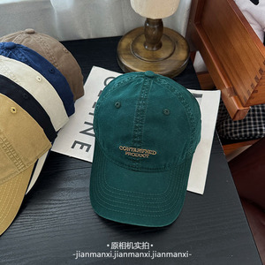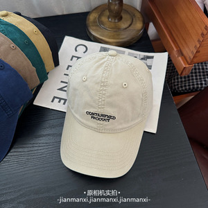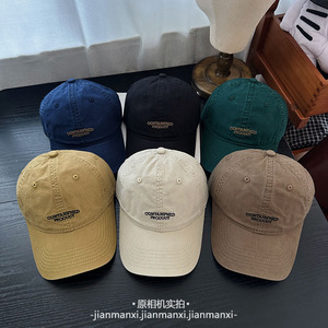 简约字母刺绣纯色水洗棒球帽子女软顶大头鸭舌帽情侣遮阳帽男潮