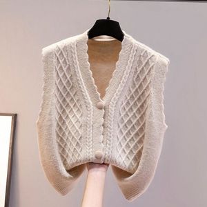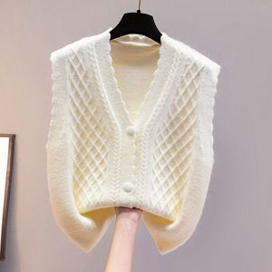 2025年甜美叠穿复古V领花边针织马甲女23年早秋新款软糯风毛衣背