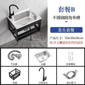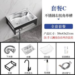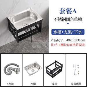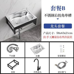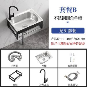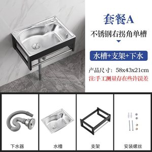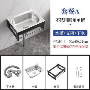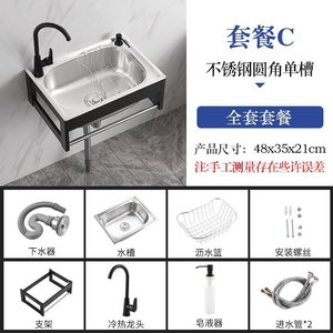 ステンレス製壁掛けシンク 小型シングルシンク キッチン シンプルな食器洗いシンク 洗面台 シングルシンク スタンド付き