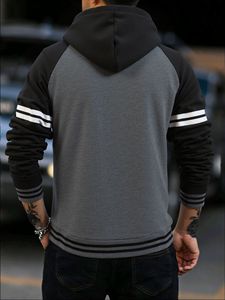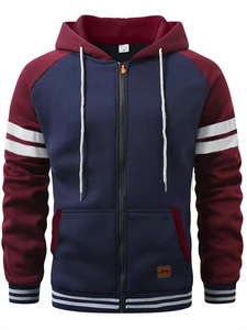 欧美2025春球新款运动休闲袖口螺纹设计连帽卫衣拼接样式有口袋