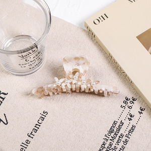 リアルアセテートヘアピン Lサイズ 11.8cm ヘアシャーククリップ 高級ダイヤモンドパール ピンクフラワーグリッパー ヘアアクセサリー