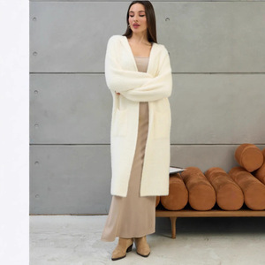 2025 春と秋の新ロングミンクニットカーディガン長袖韓国スタイル怠惰なスタイルルーズフード付きセータージャケット