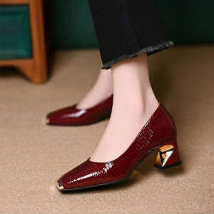 女性用スクエアトゥ女性用浅口厚底シングルシューズ2025新作ミッドヒールシューズ春秋ファッションメタルトゥ万能靴