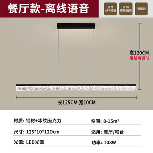 ダイニングハンギング-125*10cm-[アイスクラックランプシェード+K9クリスタル]