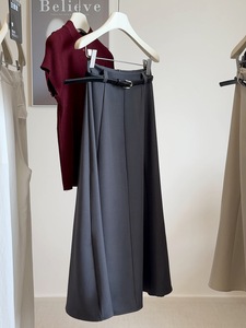 女性のためのドレープ A ライン大きな裾のスーツスカート 2025 秋の新しいエレガントな通勤スリムミッドレングスアンブレラスカート