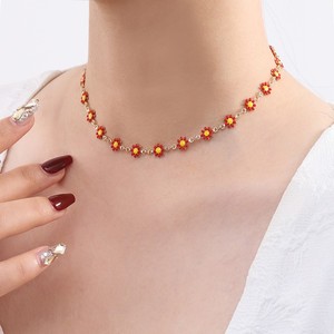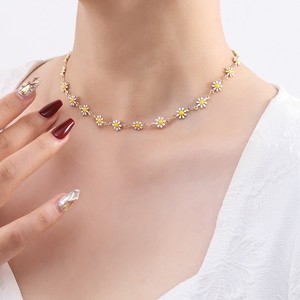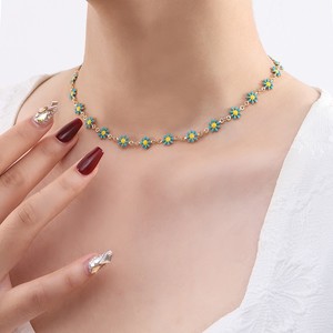 欧美跨境饰品彩色小雏菊项链女轻奢花朵锁骨链波西米亚风菊花项链