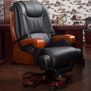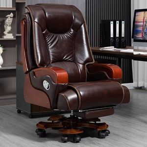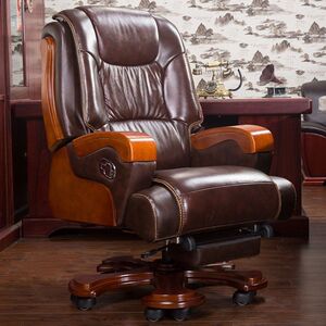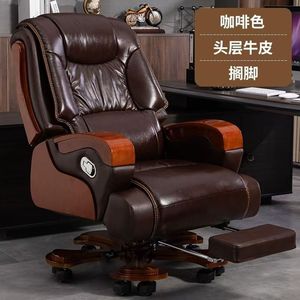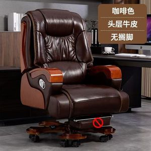 高级牛皮椅可躺家用电脑椅旋转真皮老板办公椅按摩商务大班椅