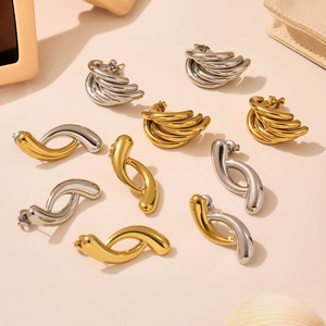 梦幻 高级感间电几何水滴耳环镀18k真金小众时尚不锈钢耳饰不掉色
